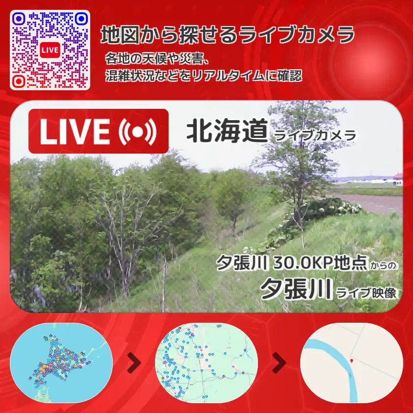 夕張川 30.0KP地点から、夕張川が確認できるライブカメラです。