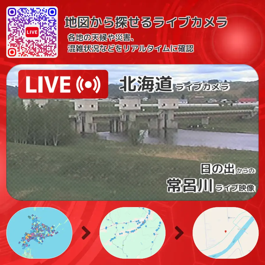 日の出(常呂川河口から64.10km)から、常呂川が確認できるライブカメラです。