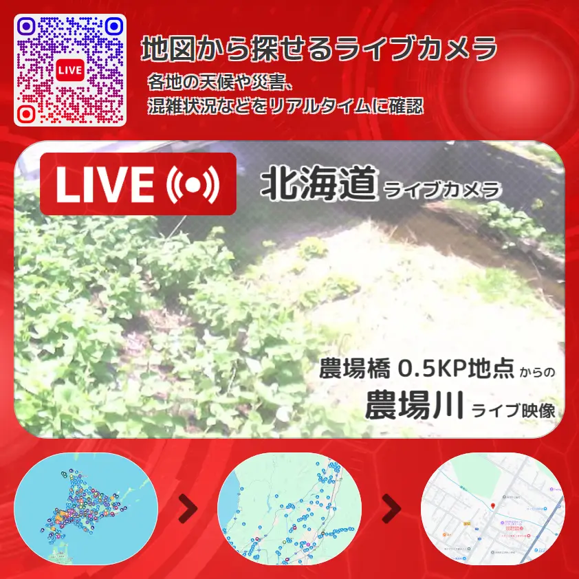 農場橋 0.5KP地点から、農場川が確認できるライブカメラです。