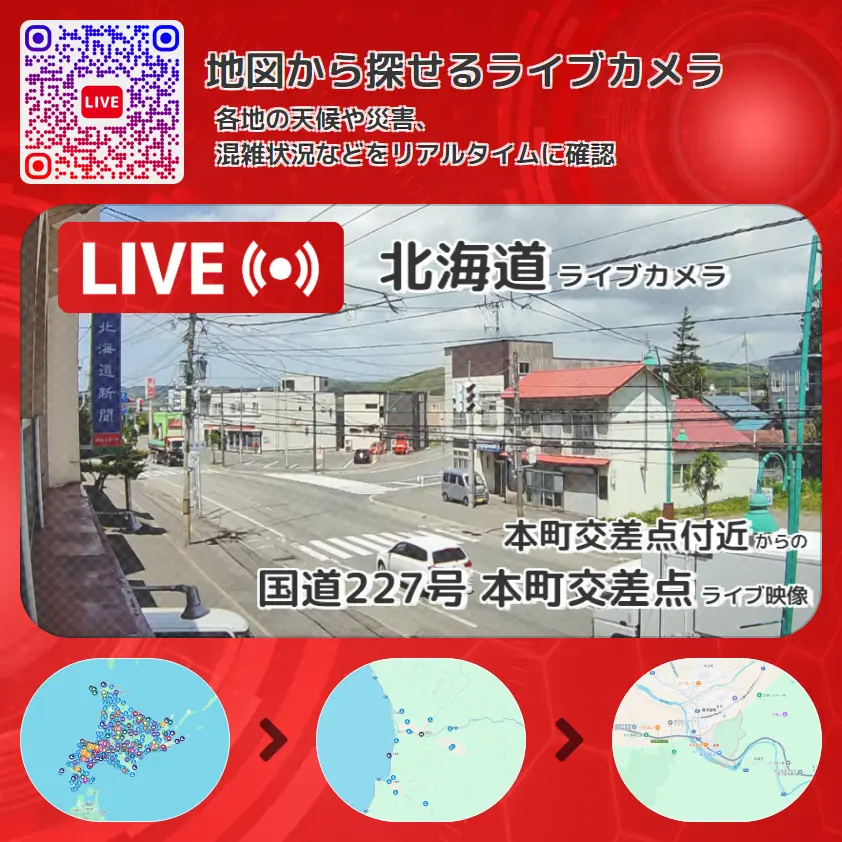 本町交差点付近から、国道227号 本町交差点が確認できるライブカメラです。