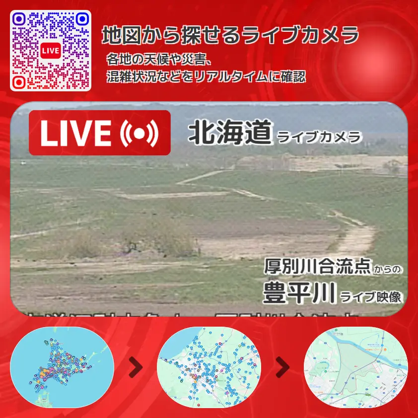 豊平川の他に、厚別川や周辺の気象状況も併せてチェックすることが可能で、台風・大雨・地震などの災害による被害状況も把握することができます。