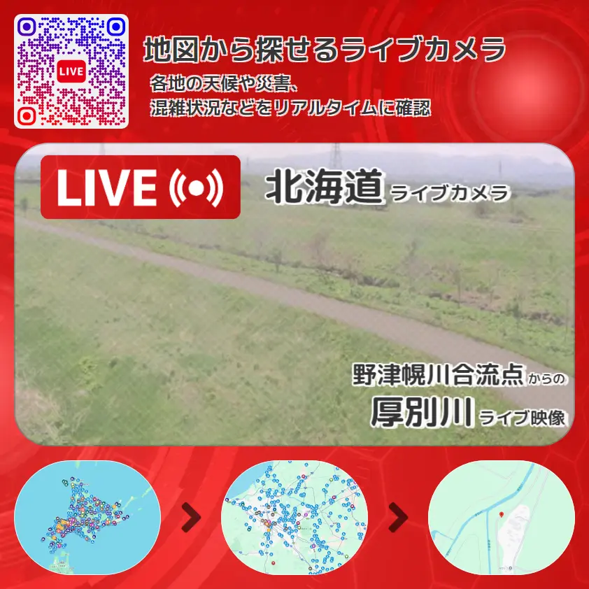 厚別川の他に、厚別川野津幌川合流地点付近や周辺の気象状況も併せてチェックすることが可能で、台風・大雨・地震などの災害による被害状況も把握することができます。