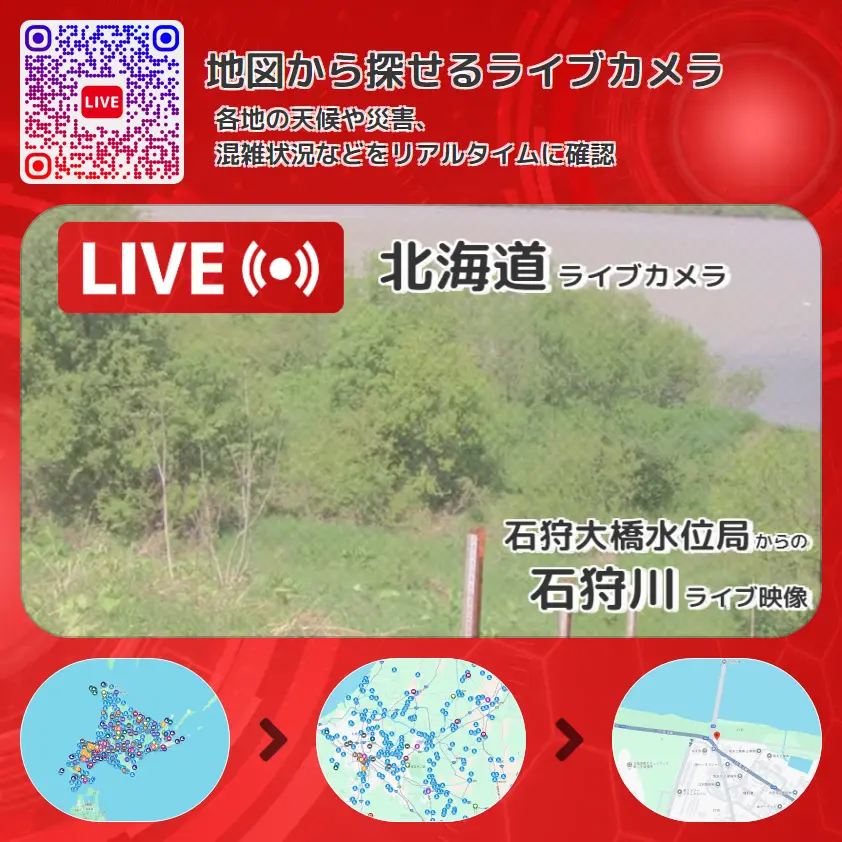 石狩大橋水位局から、石狩川が確認できるライブカメラです。