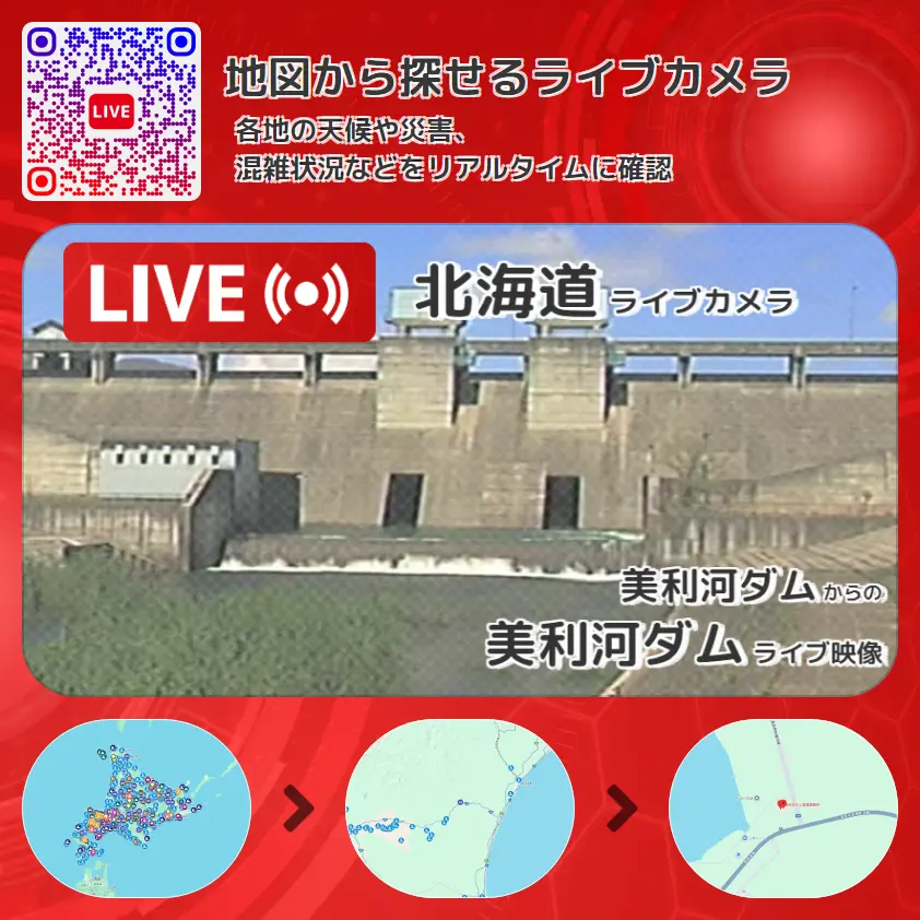 美利河ダムの他に、後志利別川や周辺の気象状況も併せてチェックすることが可能で、台風・大雨・地震などの災害による被害状況も把握することができます。