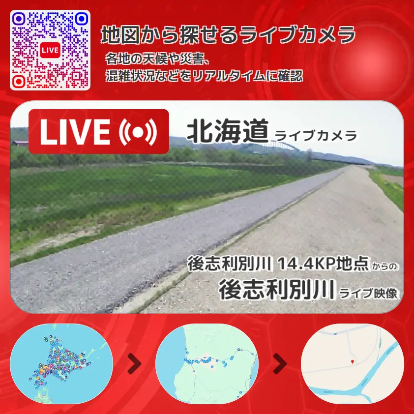 後志利別川の他に、利別大橋や周辺の気象状況も併せてチェックすることが可能で、台風・大雨・地震などの災害による被害状況も把握することができます。