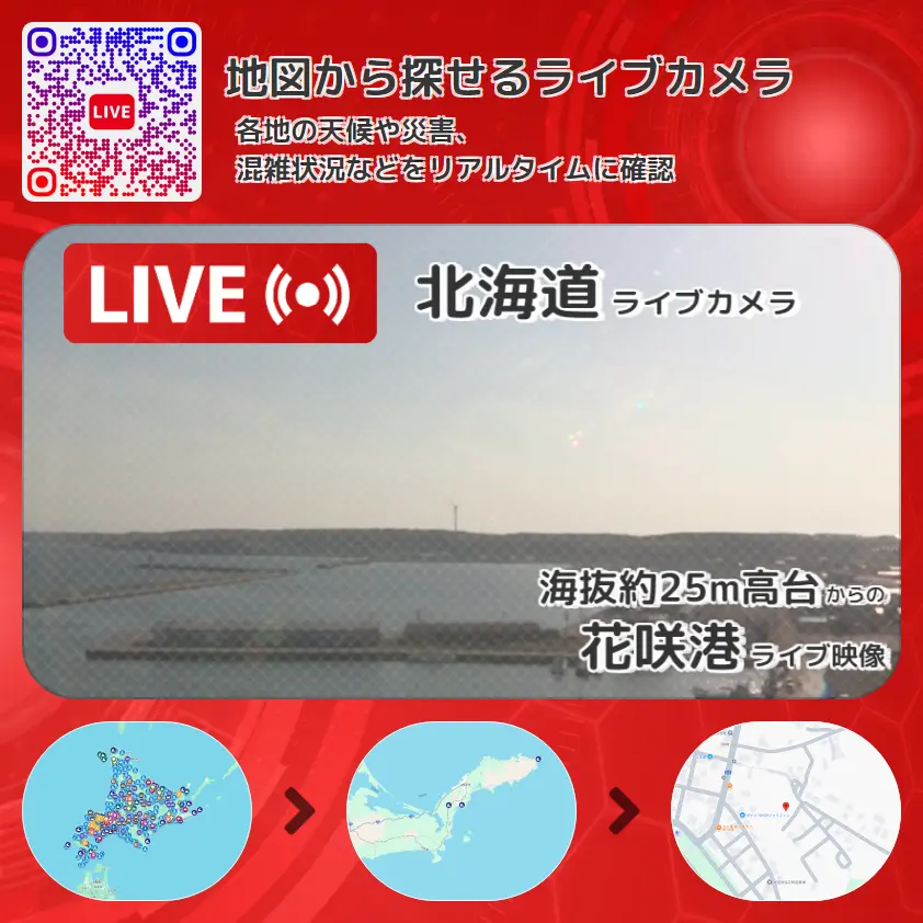 海抜約25m高台から、花咲港が確認できるライブカメラです。