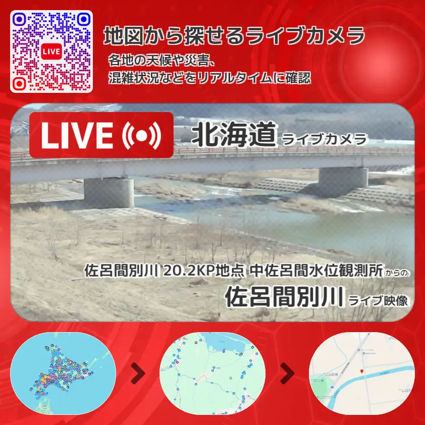 佐呂間別川の他に、富美橋や周辺の気象状況も併せてチェックすることが可能で、台風・大雨・地震などの災害による被害状況も把握することができます。