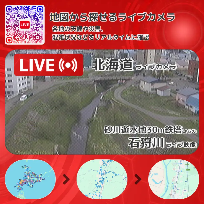 砂川遊水地30m鉄塔から、石狩川が確認できるライブカメラです。