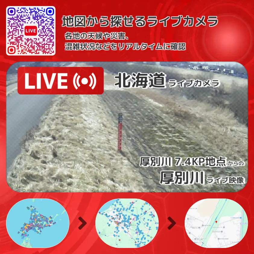 厚別川 7.4KP地点から、厚別川が確認できるライブカメラです。