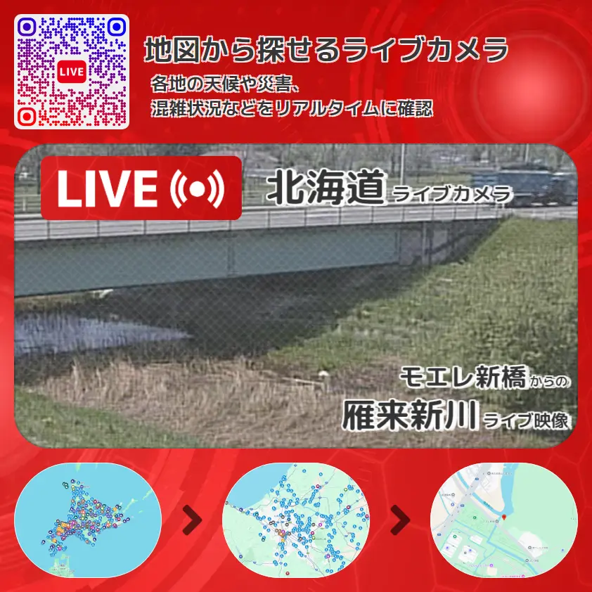 雁来新川の他に、篠路新川雁来新川合流付近や周辺の気象状況も併せてチェックすることが可能で、台風・大雨・地震などの災害による被害状況も把握することができます。