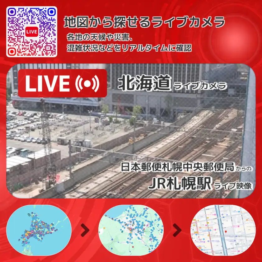 JR札幌駅の他に、JR北海道各線(函館本線・千歳線)や周辺の気象状況も併せてチェックすることが可能で、台風・大雨・地震などの災害による被害状況も把握することができます。