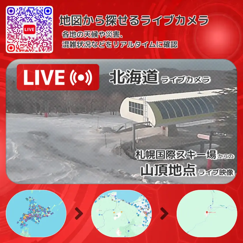 北海道 「山頂地点」ライブ映像(札幌国際スキー場 設置カメラ) ライブカメラ 監視カメラ