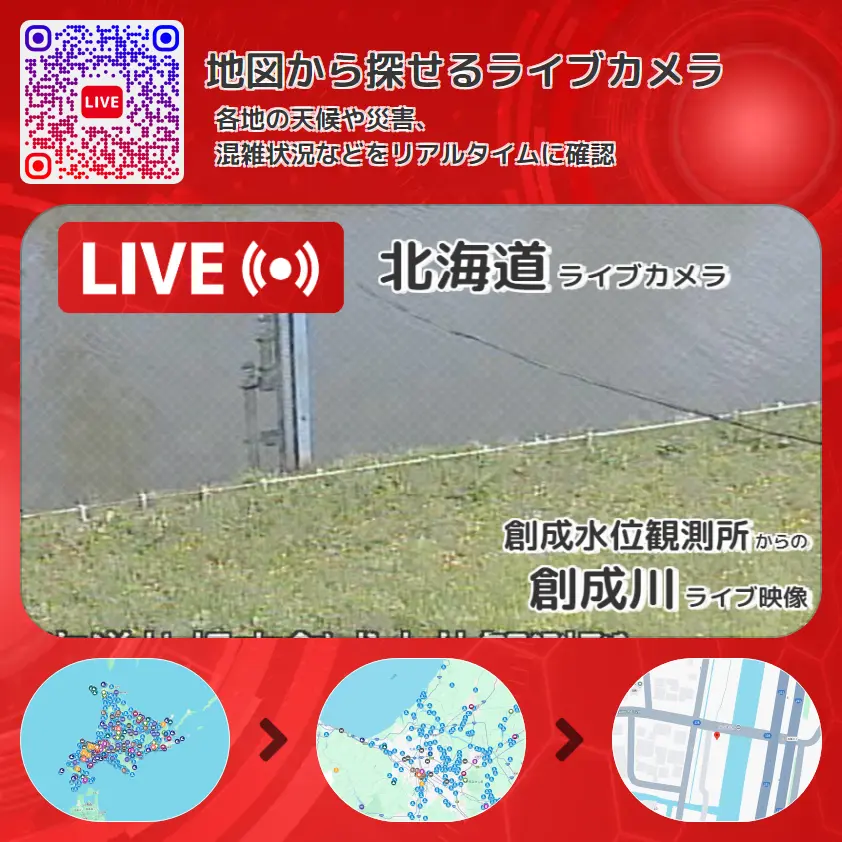 周辺の気象状況も併せてチェックすることが可能で、台風・大雨・地震などの災害による被害状況も把握することができます。