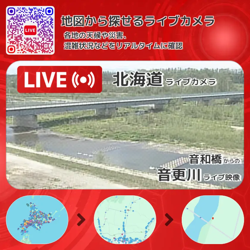 音更川の他に、北海道道771号笹川士幌線や周辺の気象状況も併せてチェックすることが可能で、台風・大雨・地震などの災害による被害状況も把握することができます。
