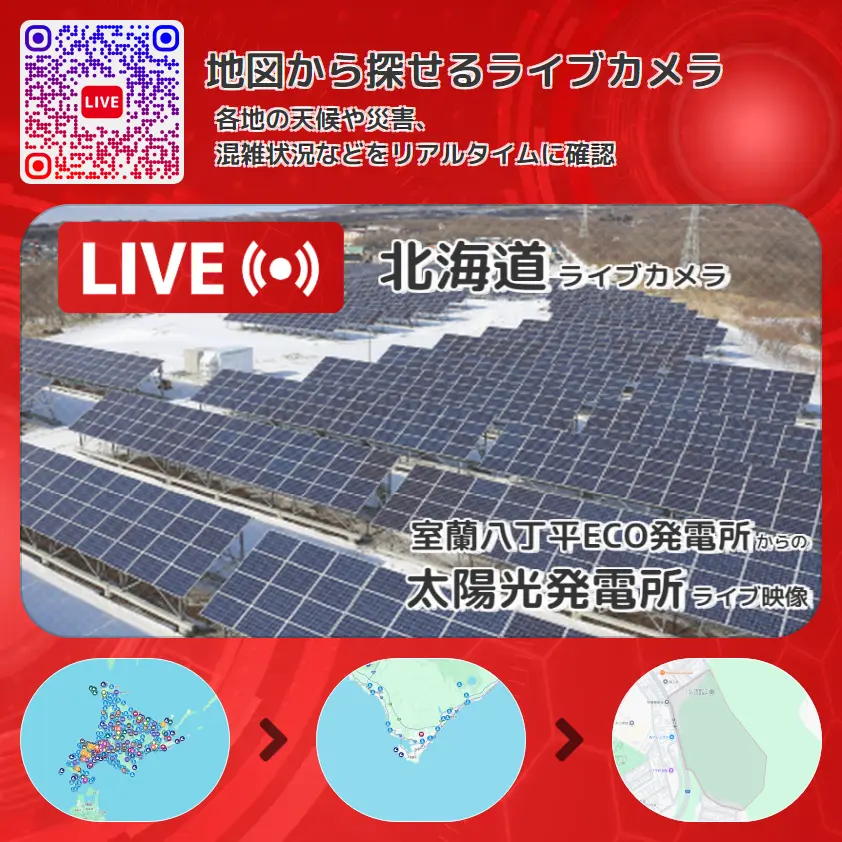 室蘭八丁平ECO発電所から、太陽光発電所が確認できるライブカメラです。