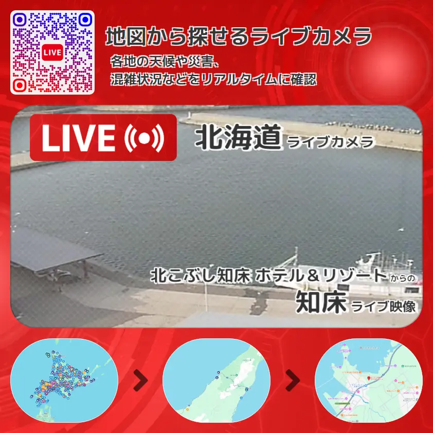 知床の他に、ウトロ港や周辺の気象状況も併せてチェックすることが可能で、台風・大雨・地震などの災害による被害状況も把握することができます。