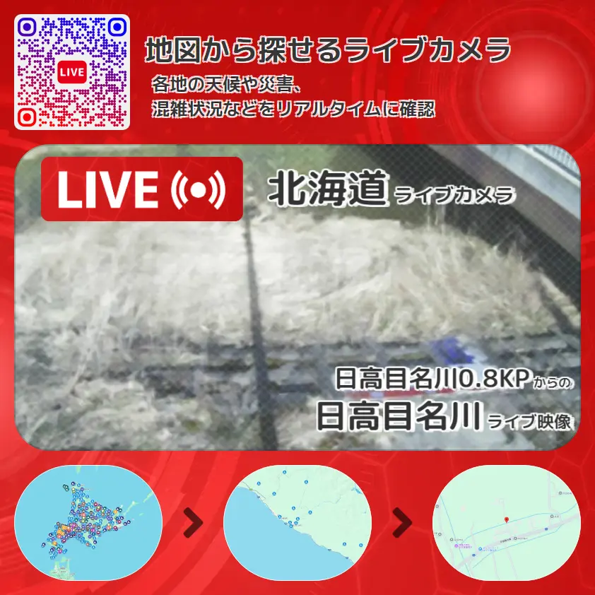 日高目名川0.8KPから、日高目名川が確認できるライブカメラです。