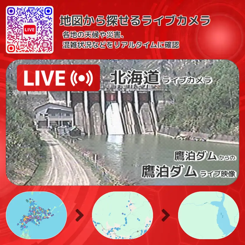 鷹泊ダムの他に、雨竜川や周辺の気象状況も併せてチェックすることが可能で、台風・大雨・地震などの災害による被害状況も把握することができます。