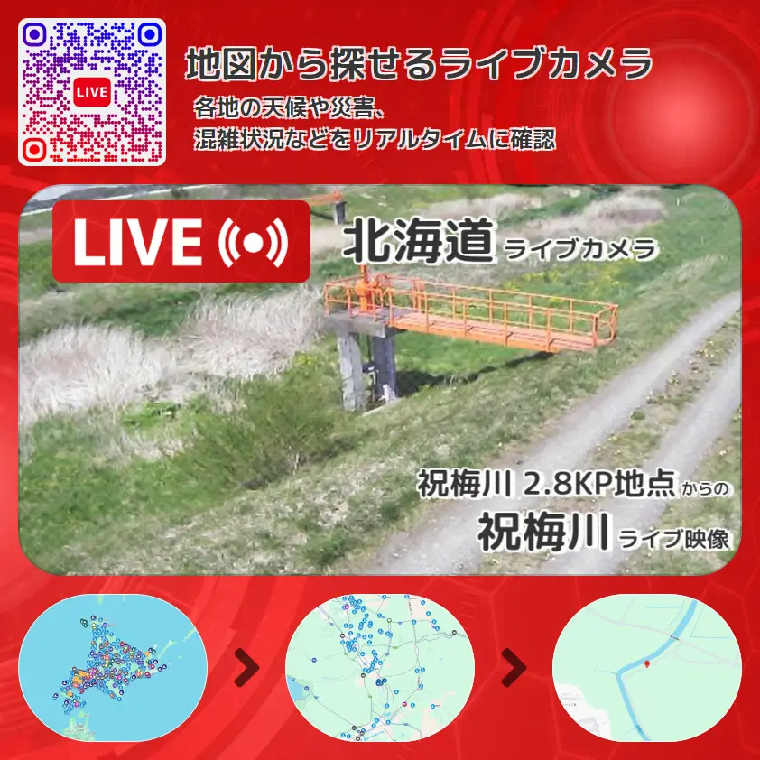 祝梅川の他に、第2祝梅橋(第二祝梅橋)や周辺の気象状況も併せてチェックすることが可能で、台風・大雨・地震などの災害による被害状況も把握することができます。
