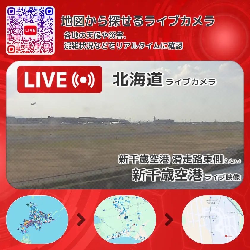 新千歳空港 滑走路東側から、新千歳空港(滑走路東側・駐機場)が確認できるライブカメラです。