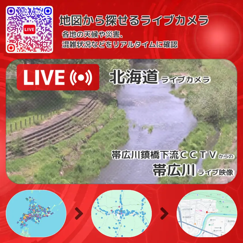 帯広川鎮橋下流CCTVから、帯広川が確認できるライブカメラです。