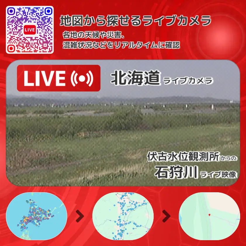 伏古水位観測所(石狩川河口から104.78km) 江竜橋下流約710mから、石狩川が確認できるライブカメラです。
