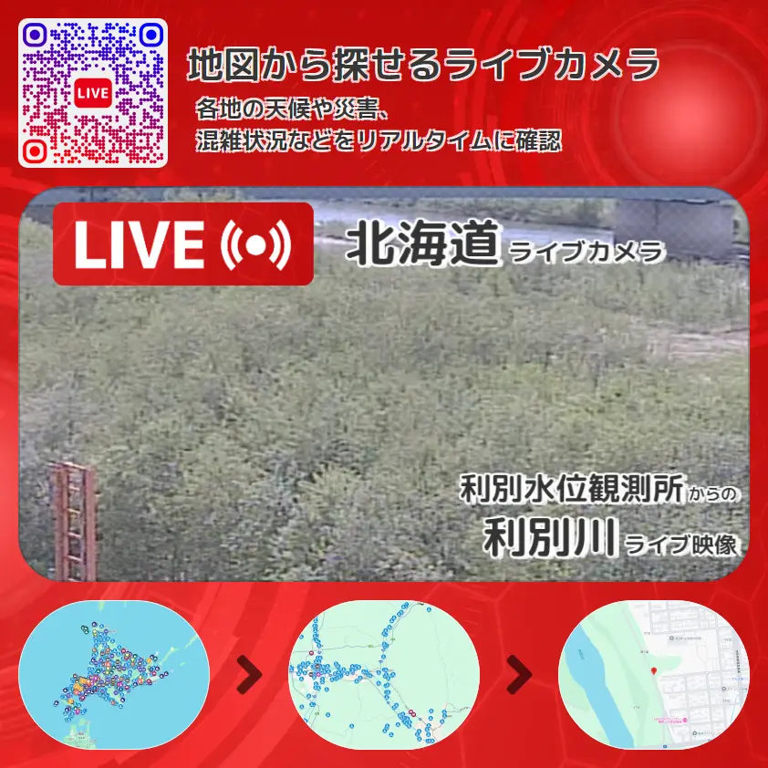 利別川の他に、池田大橋や周辺の気象状況も併せてチェックすることが可能で、台風・大雨・地震などの災害による被害状況も把握することができます。