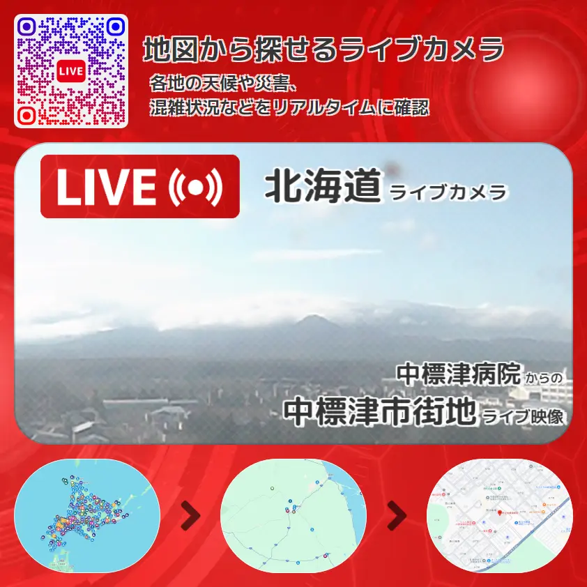 中標津市街地の他に、武佐岳や周辺の気象状況も併せてチェックすることが可能で、台風・大雨・地震などの災害による被害状況も把握することができます。