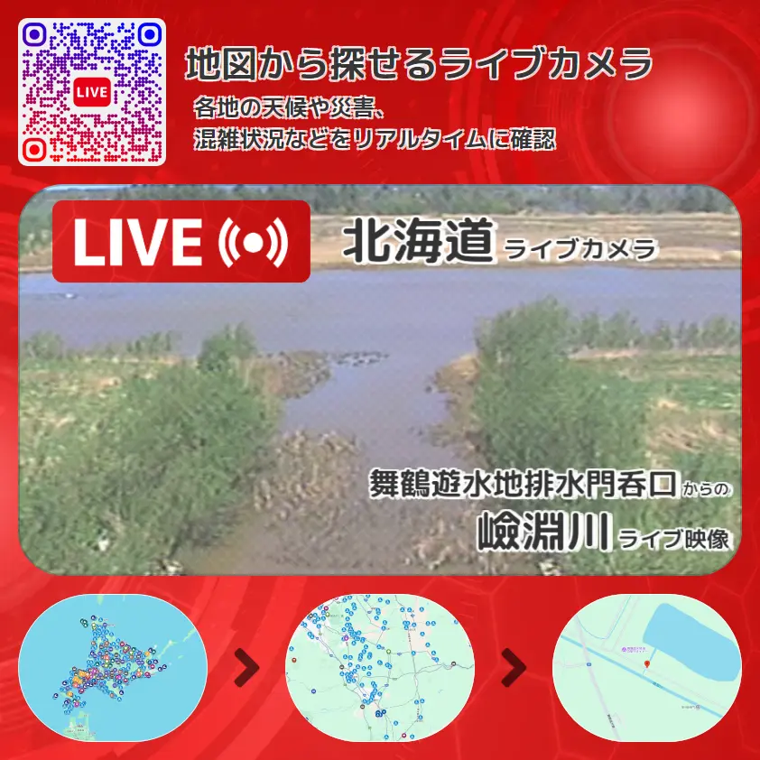 周辺の気象状況も併せてチェックすることが可能で、台風・大雨・地震などの災害による被害状況も把握することができます。