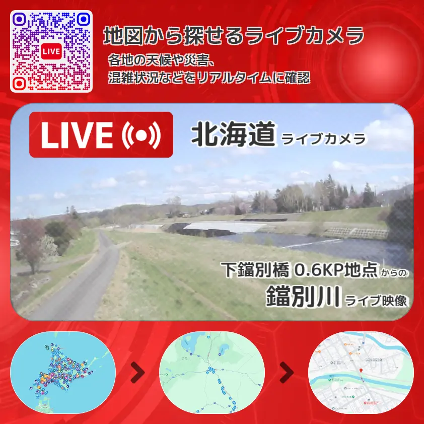 鐺別川の他に、下鐺別橋や周辺の気象状況も併せてチェックすることが可能で、台風・大雨・地震などの災害による被害状況も把握することができます。