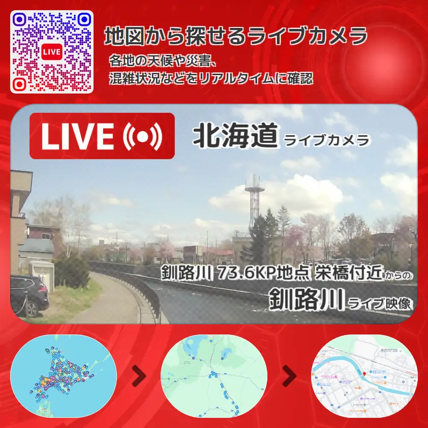 北海道 「釧路川」ライブ映像(釧路川 73.6KP地点 栄橋付近 設置カメラ) ライブカメラ 監視カメラ