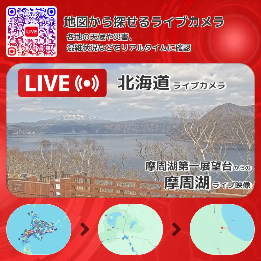 摩周湖の他に、カムイヌプリや周辺の気象状況も併せてチェックすることが可能で、台風・大雨・地震などの災害による被害状況も把握することができます。
