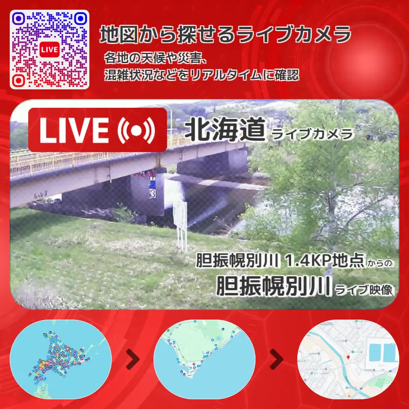 胆振幌別川 1.4KP地点から、胆振幌別川が確認できるライブカメラです。