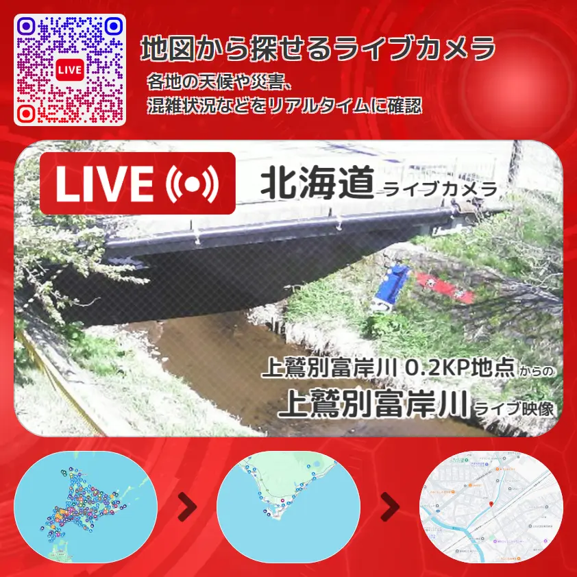 上鷲別富岸川 0.2KP地点から、上鷲別富岸川が確認できるライブカメラです。