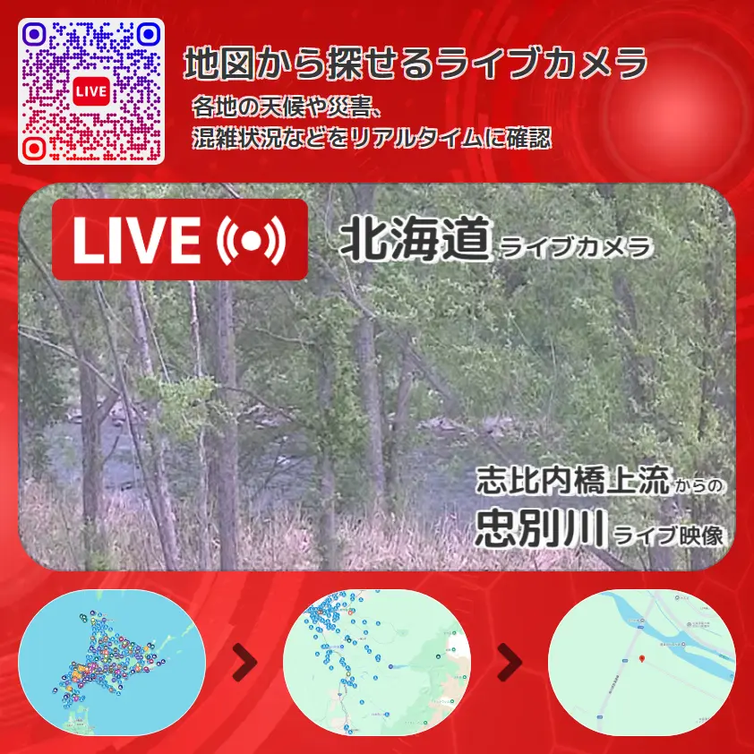 忠別川の他に、志比内橋や周辺の気象状況も併せてチェックすることが可能で、台風・大雨・地震などの災害による被害状況も把握することができます。