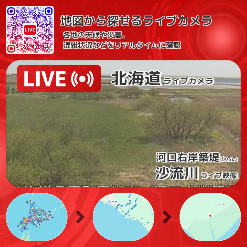 周辺の気象状況も併せてチェックすることが可能で、台風・大雨・地震などの災害による被害状況も把握することができます。