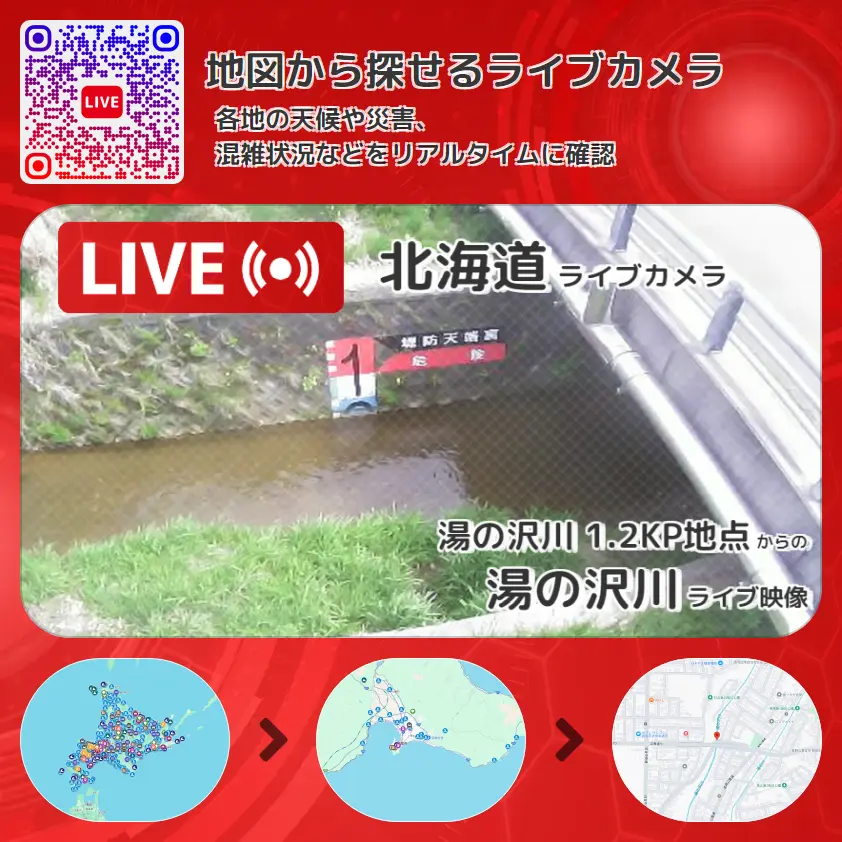 湯の沢川 1.2KP地点から、湯の沢川が確認できるライブカメラです。