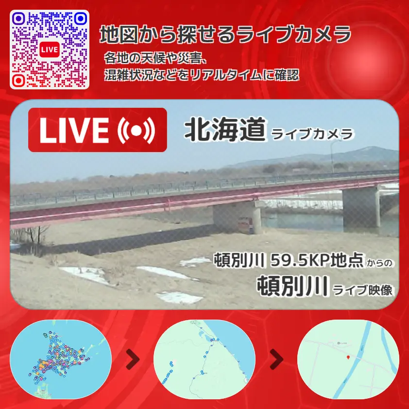頓別川の他に、新川橋や周辺の気象状況も併せてチェックすることが可能で、台風・大雨・地震などの災害による被害状況も把握することができます。