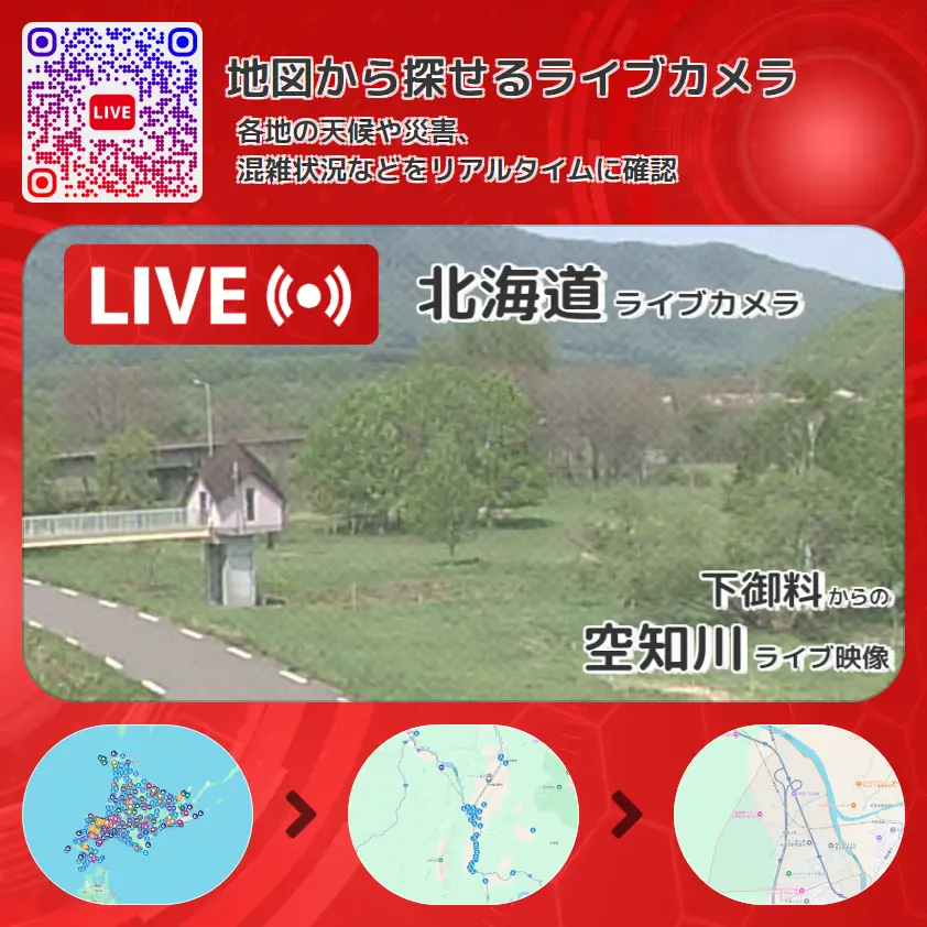 周辺の気象状況も併せてチェックすることが可能で、台風・大雨・地震などの災害による被害状況も把握することができます。