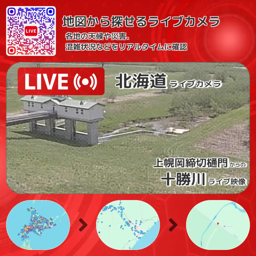 十勝川の他に、礼文内川や周辺の気象状況も併せてチェックすることが可能で、台風・大雨・地震などの災害による被害状況も把握することができます。