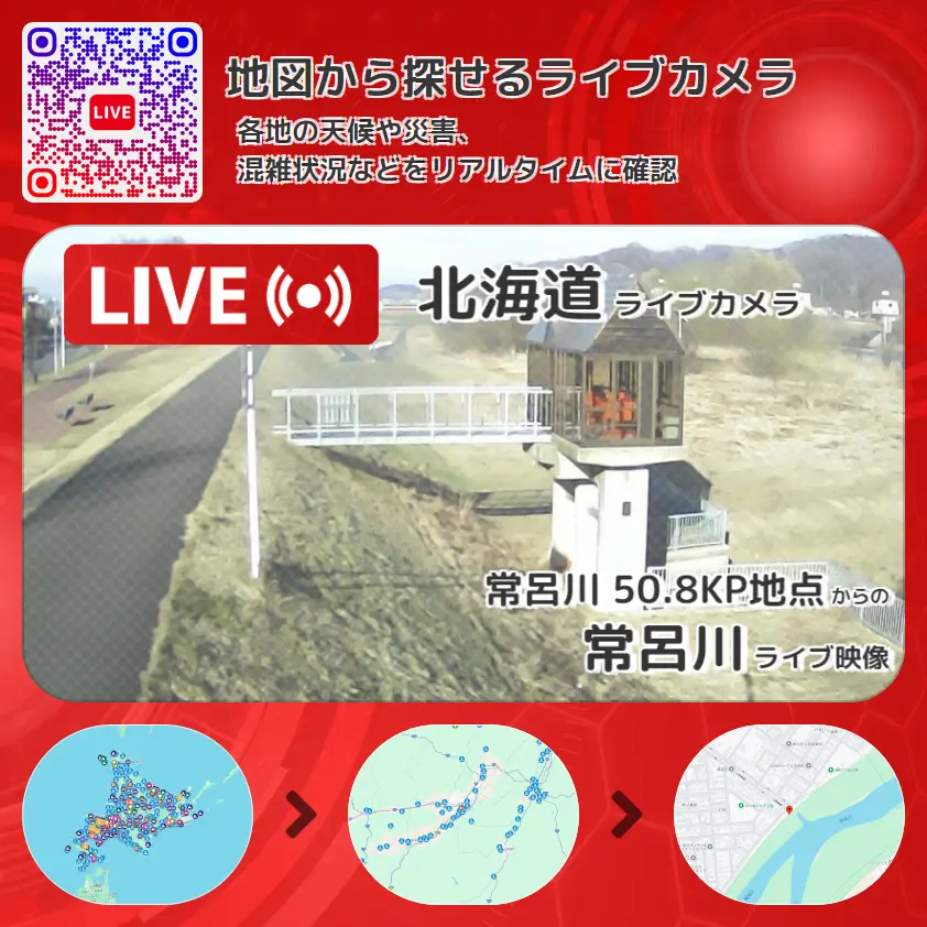 常呂川の他に、常呂川無加川合流地点付近や周辺の気象状況も併せてチェックすることが可能で、台風・大雨・地震などの災害による被害状況も把握することができます。