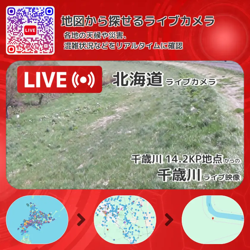 千歳川 14.2KP地点から、千歳川が確認できるライブカメラです。
