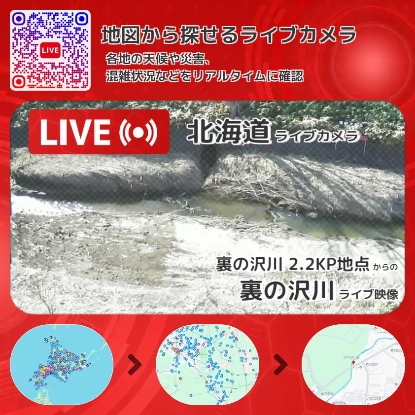 裏の沢川 2.2KP地点から、裏の沢川が確認できるライブカメラです。