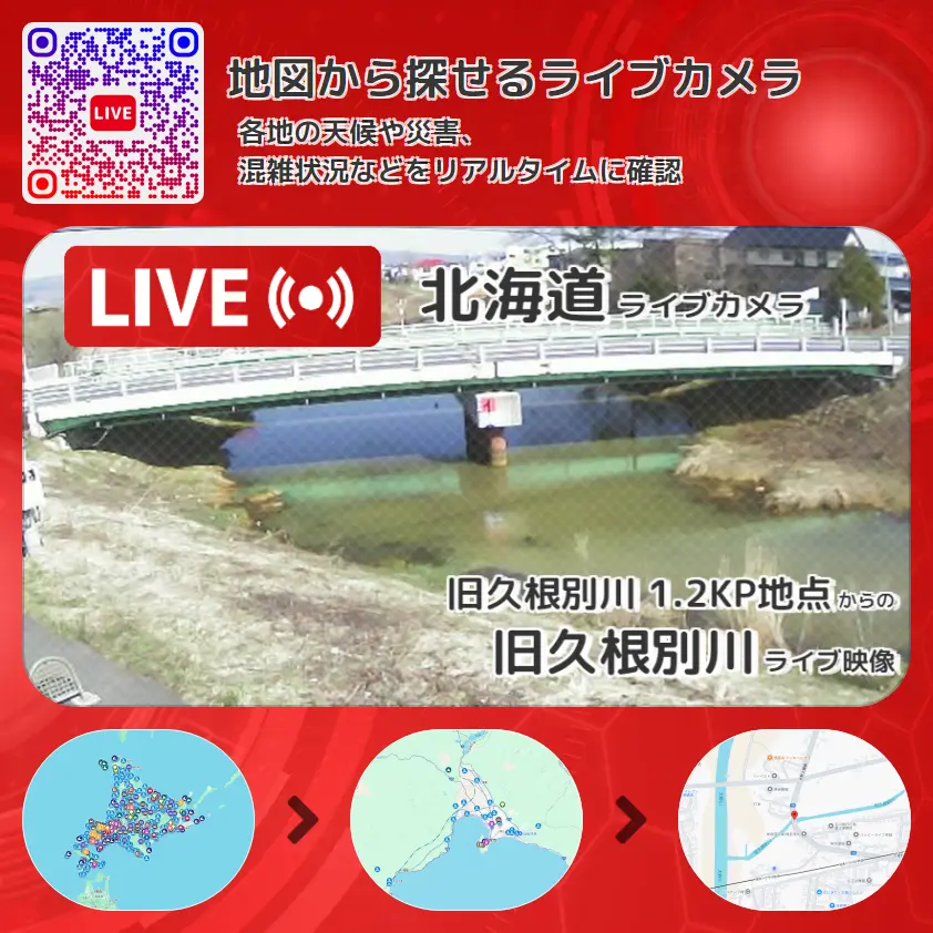 旧久根別川の他に、久根別橋や周辺の気象状況も併せてチェックすることが可能で、台風・大雨・地震などの災害による被害状況も把握することができます。