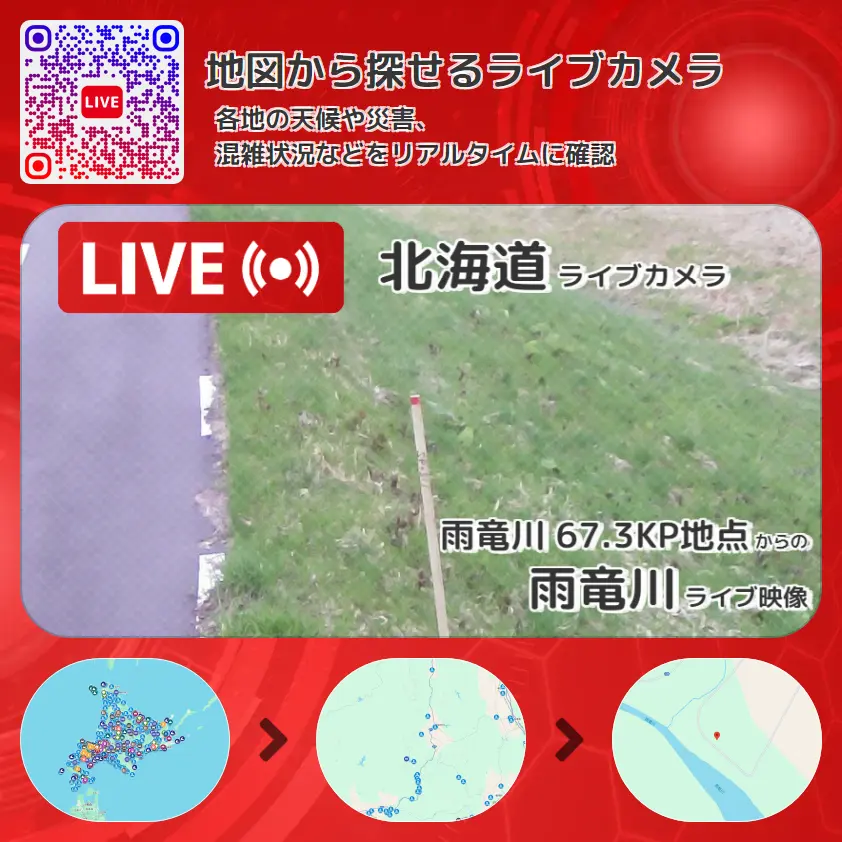 周辺の気象状況も併せてチェックすることが可能で、台風・大雨・地震などの災害による被害状況も把握することができます。