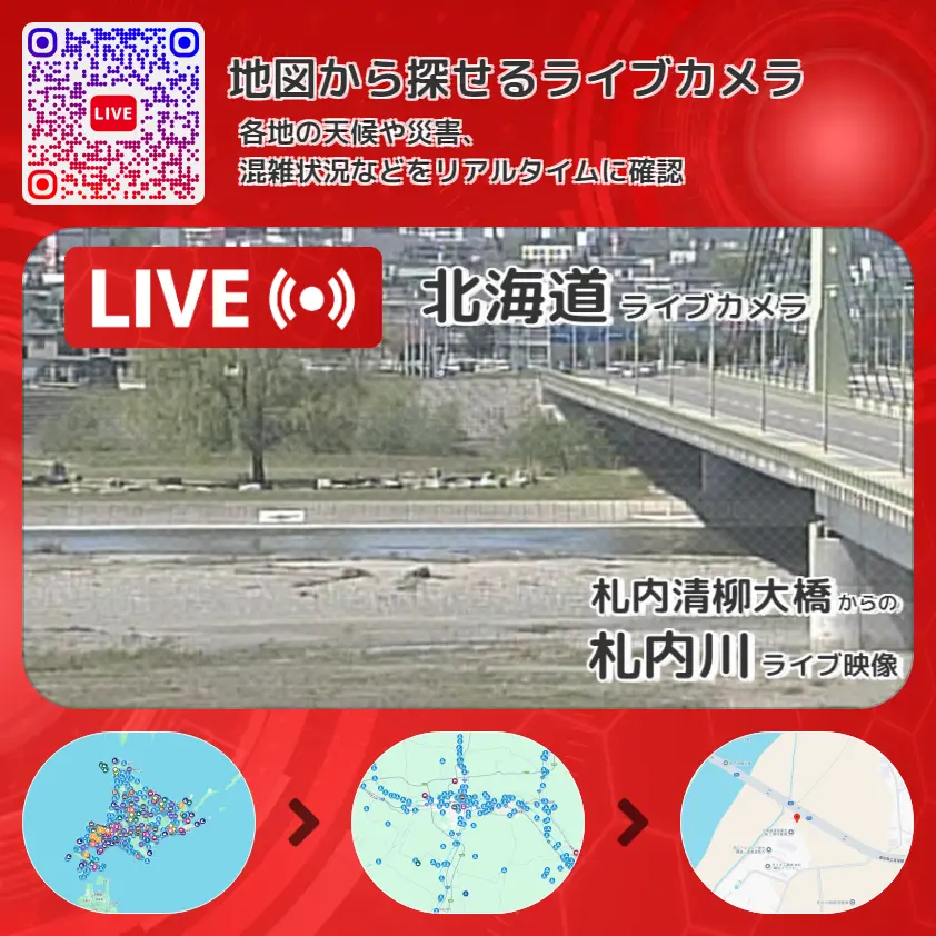 札内川の他に、札内清柳大橋や周辺の気象状況も併せてチェックすることが可能で、台風・大雨・地震などの災害による被害状況も把握することができます。