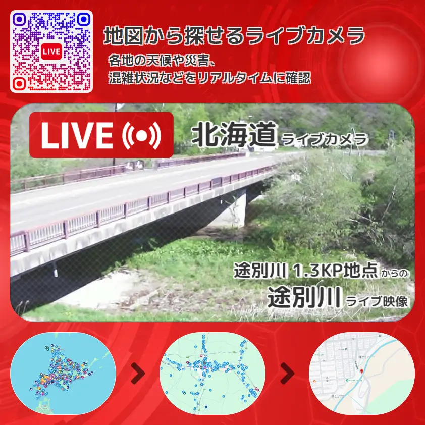 途別川 1.3KP地点から、途別川が確認できるライブカメラです。