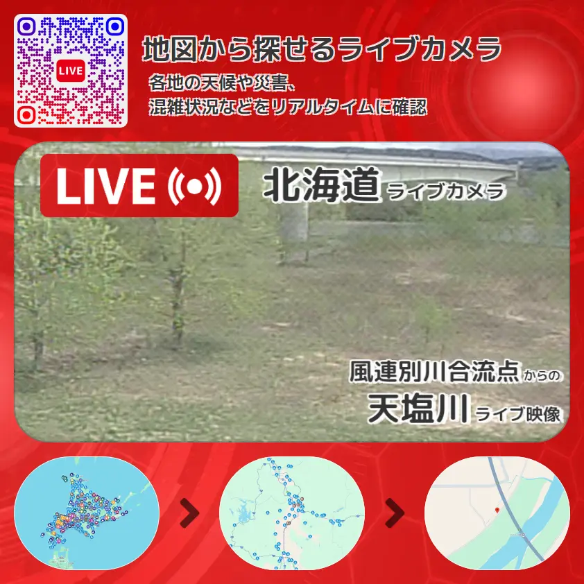 天塩川の他に、北のかけ橋や周辺の気象状況も併せてチェックすることが可能で、台風・大雨・地震などの災害による被害状況も把握することができます。