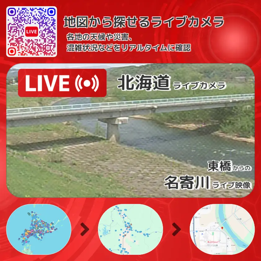 周辺の気象状況も併せてチェックすることが可能で、台風・大雨・地震などの災害による被害状況も把握することができます。