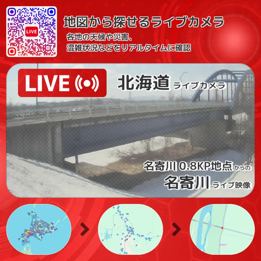 名寄川の他に、ピヤシリ大橋や周辺の気象状況も併せてチェックすることが可能で、台風・大雨・地震などの災害による被害状況も把握することができます。